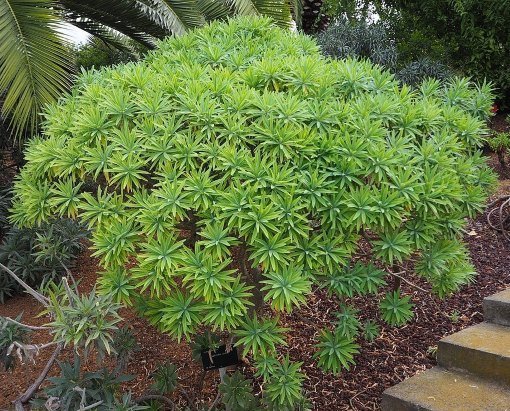 Cet arbuste succulent unique, également appelé Arbre Euphorbia, est idéal comme plante d’accent ou en contenant pour son feuillage persistant bleu-vert très ornemental.